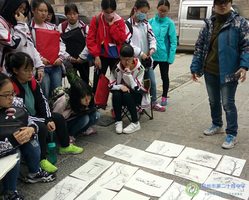 各班到写生基地后,学生们很快进入状态,老师们也没有闲下来: