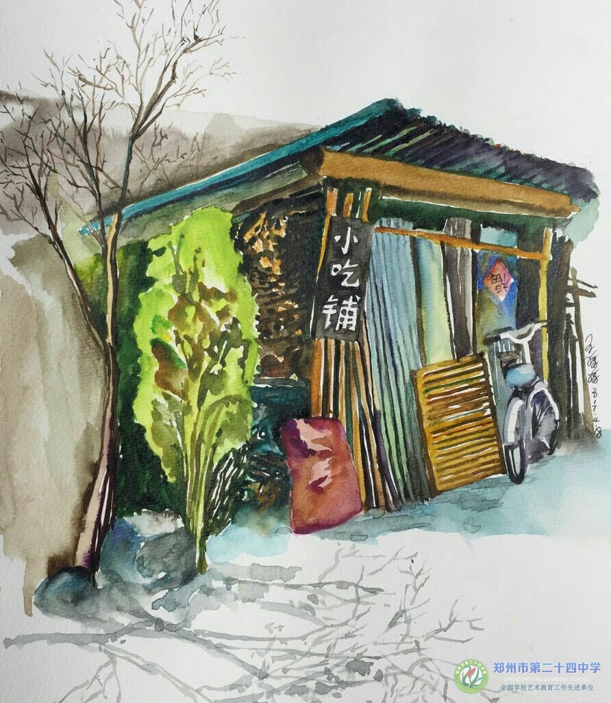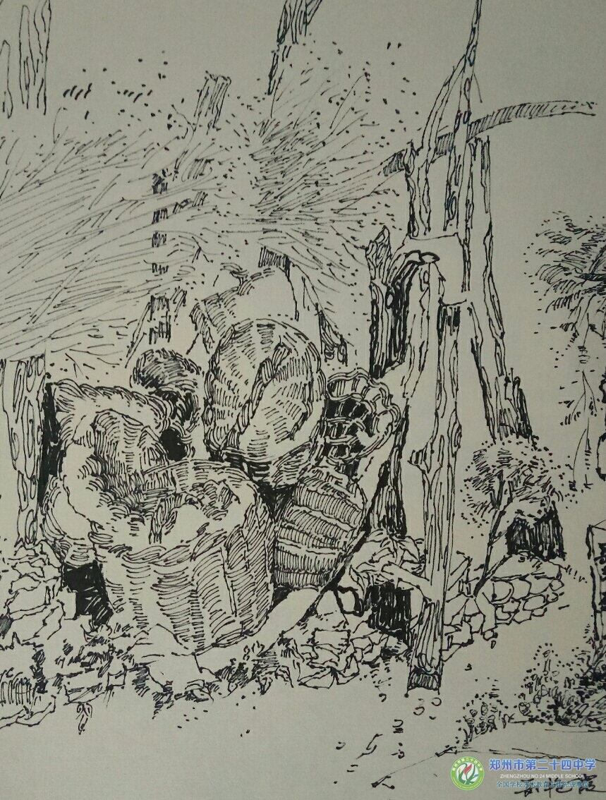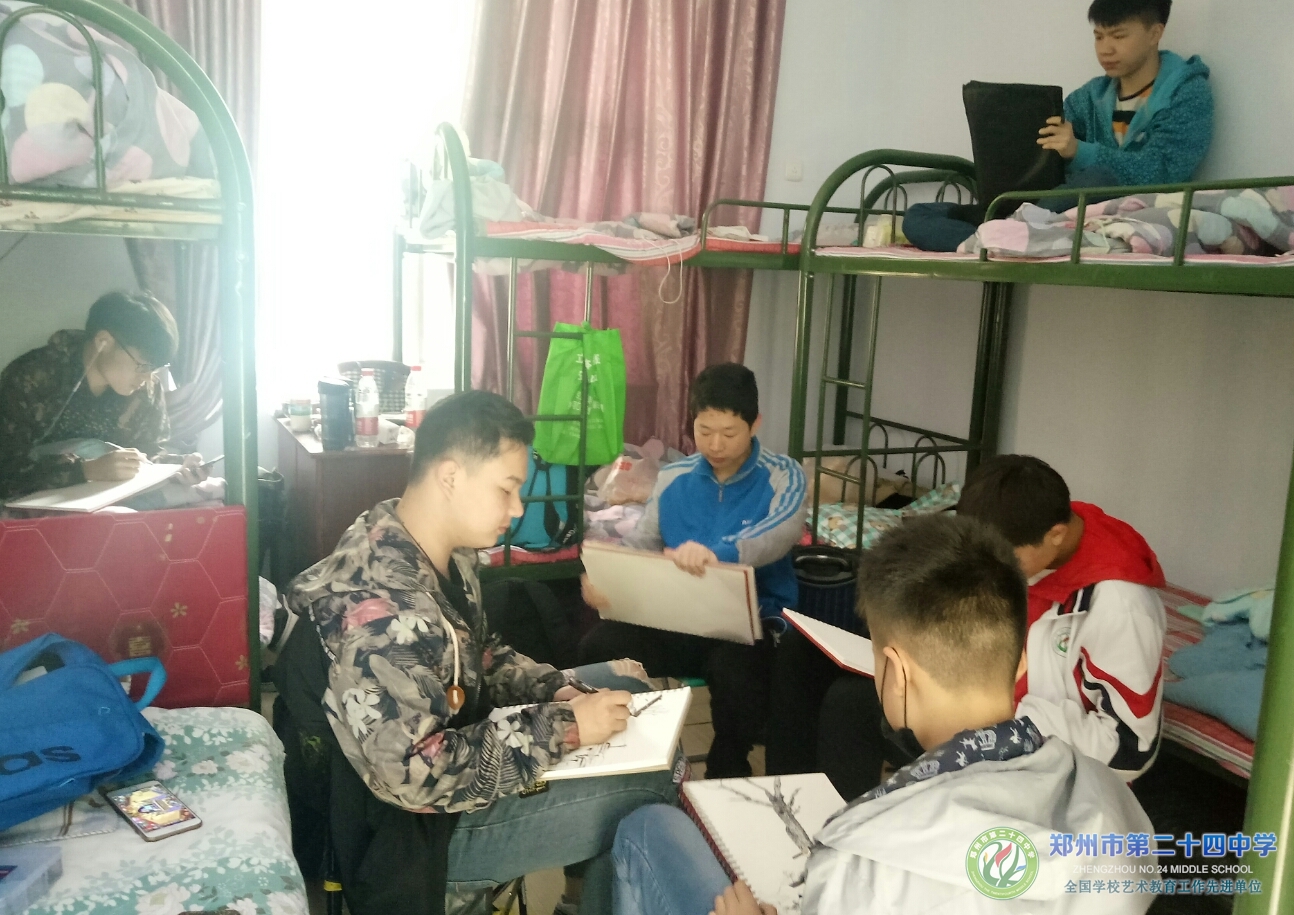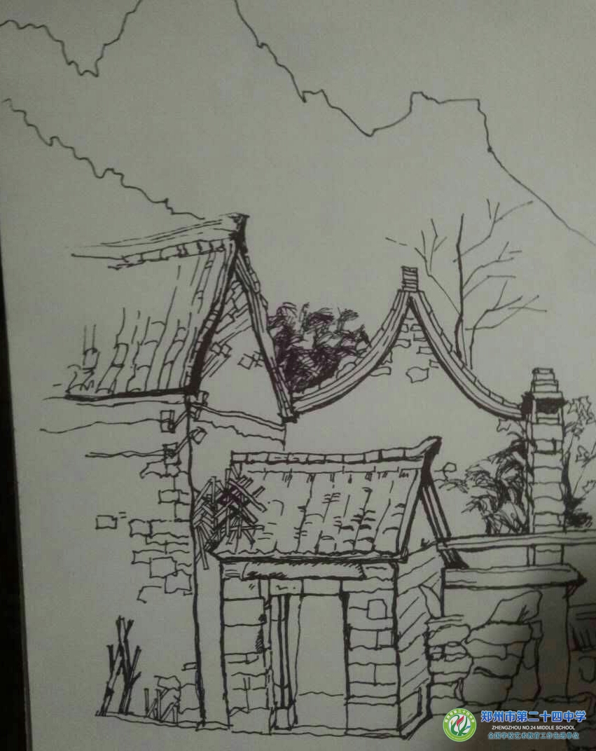 下午刮起了大风,乌云密布,学生们刚到写生基地,雨来了,出于安全考虑,学生们原路返回到各自宿舍完成专业老师布置的两张临摹作业: